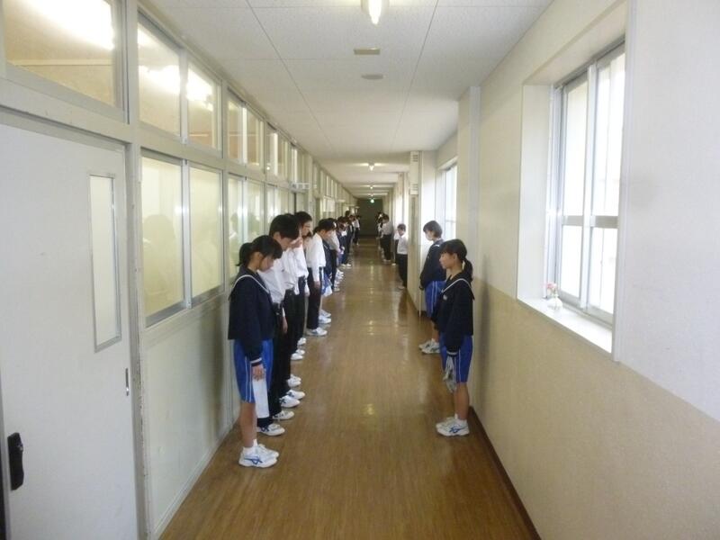 清掃前の黙想時は、学校全体が静寂の世界に。