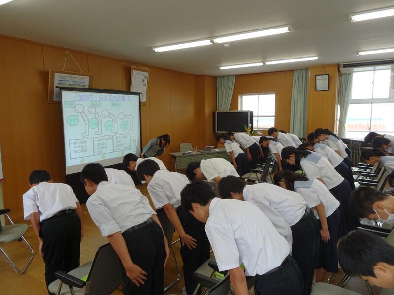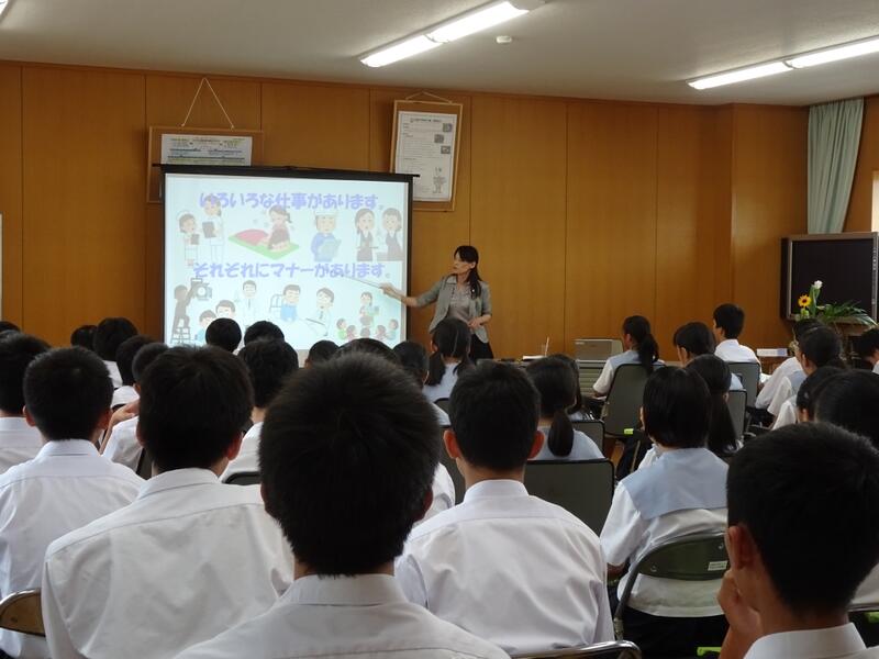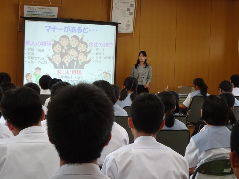 7月18日の午前中に、日本原電の方を講師に迎え「マナー講習会」を行いました。8月下旬の社会体験活動に向けた、事前学習です。
