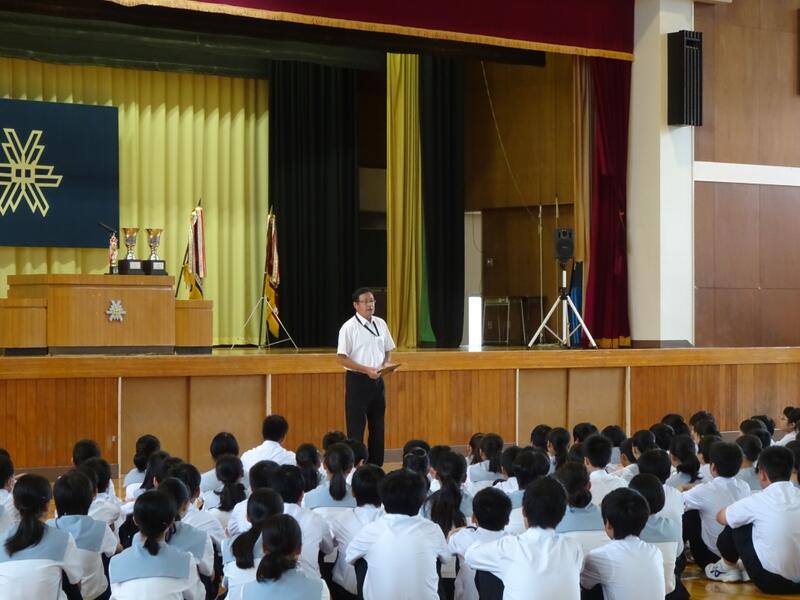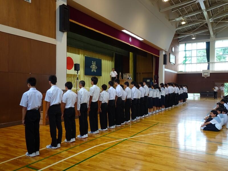 全校集会で、県中学校夏季総合競技大会の表彰を行いました。団体個人共に全力を尽くした生徒たちは良い表情で、一段と成長したように見えました。出会いと経験を活かして、次の目標に向かい、努力していってもらいたいと思います。