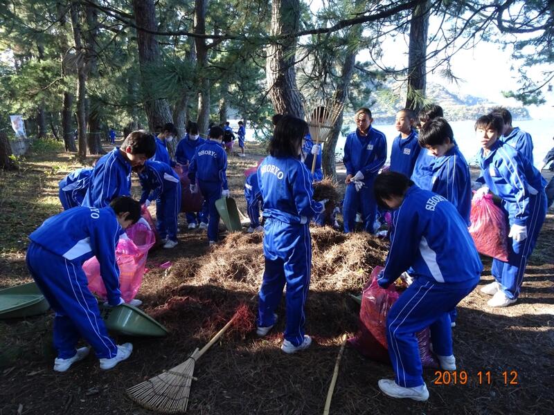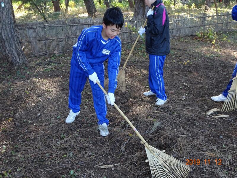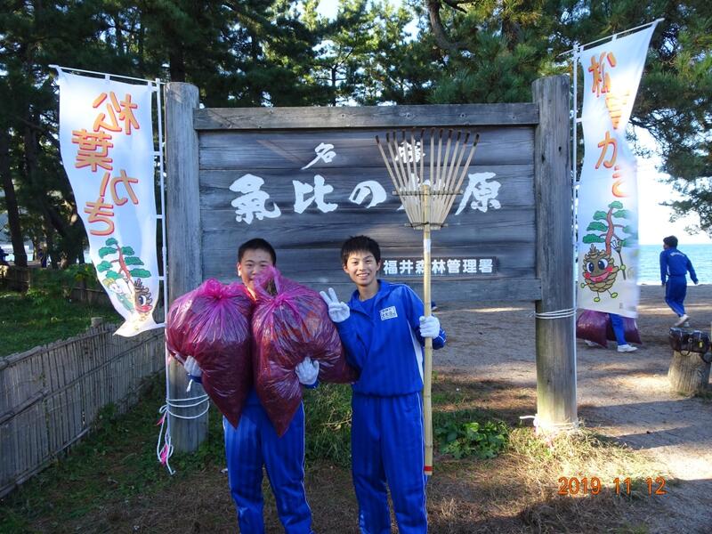 11月12日に、2年生が気比の松原にて、松葉かきを行いました。