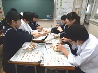 13日(水)6限目,3年生が福井の特産物である越前ガニを食べる体験をしました。