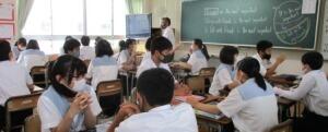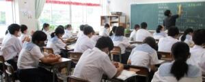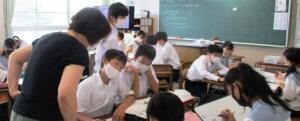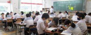 夏休みを利用して数学の学力アップを図る意欲満々の生徒が集まって勉強。
