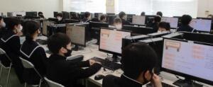 1年生の技術、パソコン室を使っての授業。