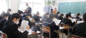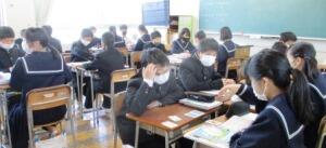 先生の話を聞いて、資料を見て、学習を進めていました。