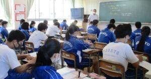 問題の読み取りのポイントや考え方を聞き、次に生かそうと集中しています。