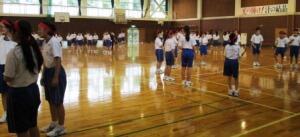 色別体育。赤は第4場面の練習のようです。
