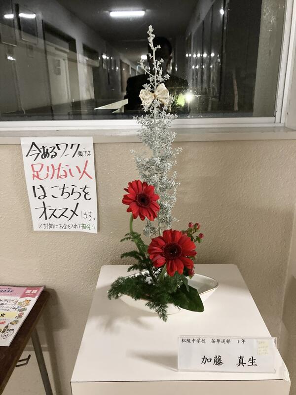 校内を明るく華やかにしてくれる茶華道部の作品です。