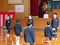 卒業生の3人は、校長先生から堂々と卒業証書を受け取りました。お別れの言葉では、小学校での成長を振り返り、自分の思いを伝えました。1~5年生が卒業生へ感謝と励ましの気持ちを伝える姿も立派でした。赤崎っ子12人で心温まる卒業式にすることができました。これからも3人の活躍を応援していきます。