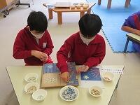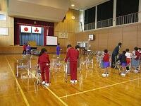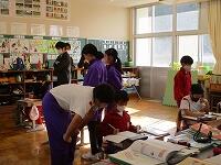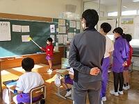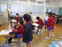 1年生は音楽と算数の授業。音楽では、歌を歌ったり楽器を演奏したり、大人数で楽しく活動することができました。算数では、大きな数の復習としてペアでおはじきゲームをして盛り上がりました。2年生は算数と体育の授業でした。算数では、両手を広げた長さを測るグループ学習に、体育では、「北小かるた」を使ったかるた取りゲームに意欲的に取り組むことができました。