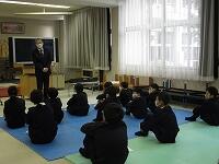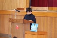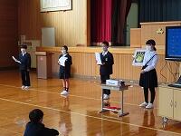 1部の「見守り感謝の集い」では、登校班の班長が、見守り隊の方々へ登下校の見守りに対する感謝の気持ちを伝えました。また、4年生の力強い声に続けて、全校で交通安全宣言を行い、交通安全への意識を高めることができました。見守り隊の皆様にはこれからのお世話になります。