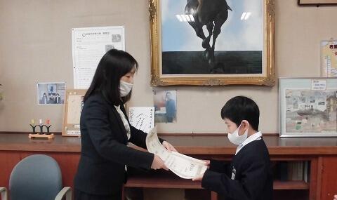 遠隔で図工、読書感想文の表彰を行いました。