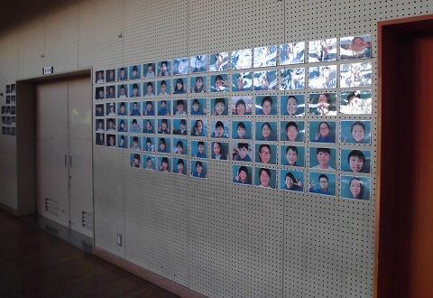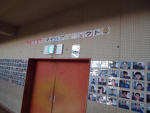 年が明けて、北小体育館の壁面に、児童会が「スマイル・プロジェクト」と題して、北小児童と職員の写真を飾りました。