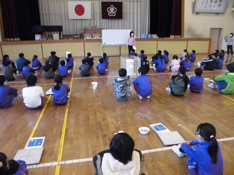 校長先生からは、日本人宇宙飛行士野口聡一さんの紹介や今年度4月に開校する角鹿小中学校についての詳しい話がありました。