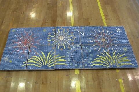 「とうろう流しと花火大会」をテーマに見本通りに並べていくと、このような花火の模様ができあがりました。