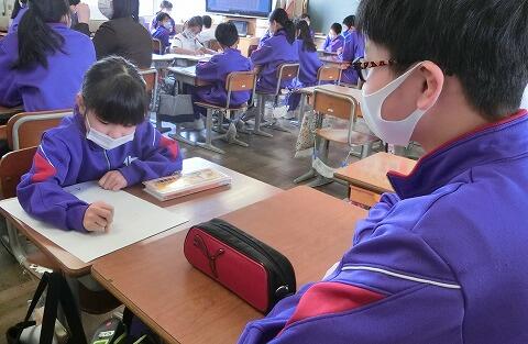 どんな風に描けたかは、2月の「6年生を送る会」までのお楽しみです。この似顔絵は、1年生が6年生へプレゼントする予定です。