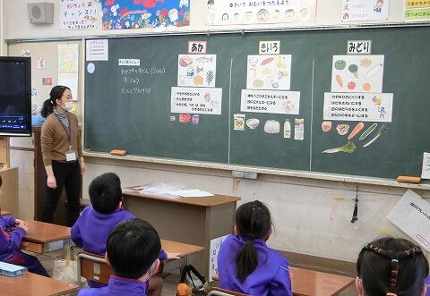 4時間目は、2年生が給食センターの栄養教諭に食べ物の栄養素について教えていただきました。