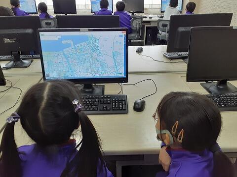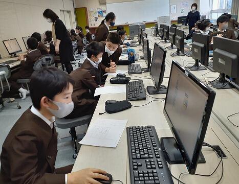 今日は、ICT支援の先生が来校されて、パソコン室での授業です。2年生はストリートビューを使って町探検をしました。