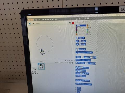 5年生はプログラミング。算数の「正多角形」を描きました。
