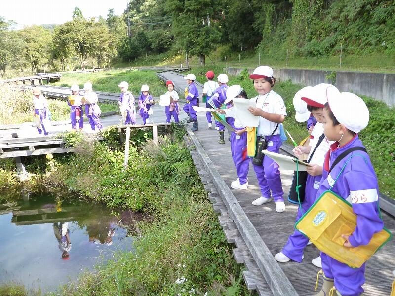 14日(金)に、1・2年生が敦賀北小、赤崎小のみなさんと一緒に、中池見で合同学習を行いました。トンボや水生動物の観察をしたり、施設内の見学をさせていただきました。3校の1・2年生が仲良く学習することができました。