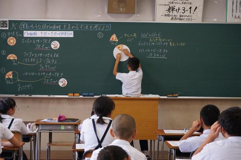 2日(木)に、今年度第1回目の小中連携授業を行いました。6年生にとっては、これまで小小連携授業で他校の子どもたちと一緒に学習してきましたが。中学校の教室で学習することや中学校の先生から教わることは初めてで、少し緊張した様子でしたが、その雰囲気にもすぐ慣れ、算数「円の面積」、音楽「世界が一つになるまで」を楽しく学習することができました。