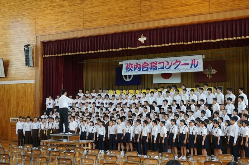 9月28日(金)に小中交流行事として、角鹿中学校の合唱コンクールを見学させていただきました。中1~3年のすばらしい合唱を聴いた後、小学生も参加しての全員合唱を行いました。会場いっぱいに響き渡るすばらしい歌声でした。6年生のみんなは、中学生の合唱に対する意識の高さを感じることができました。また、来年度の自分たちの姿をイメージすることもできました。