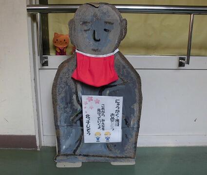 今年も「北っ子じぞう」が図書室で、新入生の皆さんの入学を心待ちにしています。