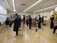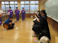 また、音楽で学習した「こいぬのマーチ」を鍵盤ハーモニカやトライアングル、すず、カスタネットなど、色々な楽器で合奏したり、6年生への思いを替え歌にして歌ったりしました。