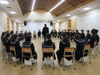 まず、新年早々に起きた大きな地震についてのお話がありました。津波を警戒して避難した人もいたということで、つらい気持ちや心配な気持ちがある人は遠慮なく相談してほしいこと、つらい時こそ前向きな気持ちでがんばっていこうというお話でした。