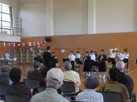 その中で『高齢者スポーツと演芸のつどい』の演芸の部門に、本校の吹奏楽部が招待を受け、みなさんの前で、ミニコンサートを開かせていただきました。