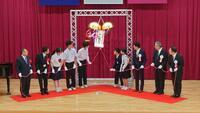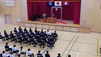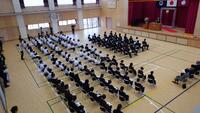 たくさんのお客様をお招きして盛大に開催されたこの式は、中学校3年生と小学校6年生が会場で参加しました。他の学年は教室で中継動画を視聴する形で、角鹿小中学校すべての児童生徒が、この式に参加しました。