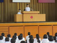 9月27日(火)、中学校では『二州地区中学校新人大会』に向けた壮行会が行われました。1,2年生にとっては新チームになって初めての公式戦。緊張の中にも「チーム全員で力を合わせて頑張りたい!」という強い意欲を感じました。