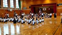 壮行会に先立ち、3年生の先輩たちから、各部新キャプテンたちに部旗の引き継ぎ式が行われました。