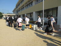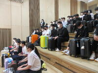 重い荷物を抱えて出発式に臨む3年生、実行委員長の言葉をうなずきながら聞いていましたね。