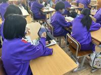 教科書にも掲載されている、「MESH」という教材を使い、子どもたちはプログラミングを行いました。
