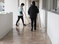 特別教室の窓ふき、トイレ掃除、階段掃除、そして玄関や玄関外壁の掃除まで50名以上のみなさんが、本当に寒い中黙々と持ち場をすみずみまでキレイにしてくださいました。保護者の方と一緒に参加してくれた小学生・中学生も、熱心に自分の持ち場をピカピカにしてくれました。
