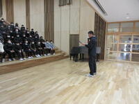 2月19日(月)、まもなく卒業を迎える中学校3年生から、同じくあと3週間ほどで小学校を卒業し、中学生となる小学校6年生に向けて、『つのセミ』が行われました。