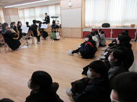 また、音楽で学習した「こいぬのマーチ」を鍵盤ハーモニカやトライアングル、すず、カスタネットなど、色々な楽器で合奏したり、6年生への思いを替え歌にして歌ったりしました。
