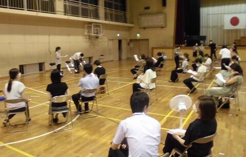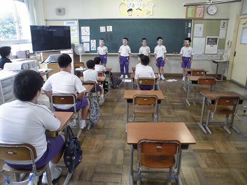 フェイスシールドをつけて、本番通りに行いました。練習の成果がとても出ていて、みんな大きな声で発表できました。