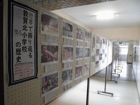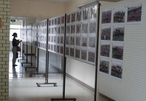 1階廊下(1年教室へ向かう廊下)に6年生が総合的な学習時間に開校からの歴史についてまとめた掲示物(歴代の卒業写真、行事、校舎、校長先生などの写真)が展示してあります。ご来校の際にぜひ、ご覧ください。