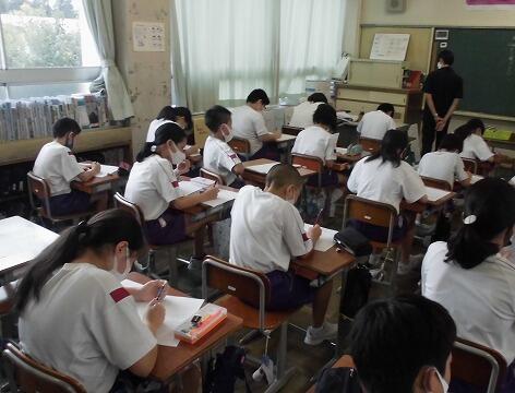 写真を見ながら、昨日までの出来事を振り返り、ワークシートに思いを書いていました。