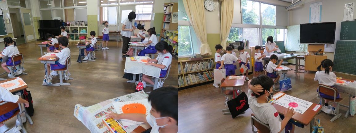 「おひさま だいすき」 元気でたのしいおひさまが、せいぞろいしました。そのまわりには、好きなものも、いっぱいかけたね。 |