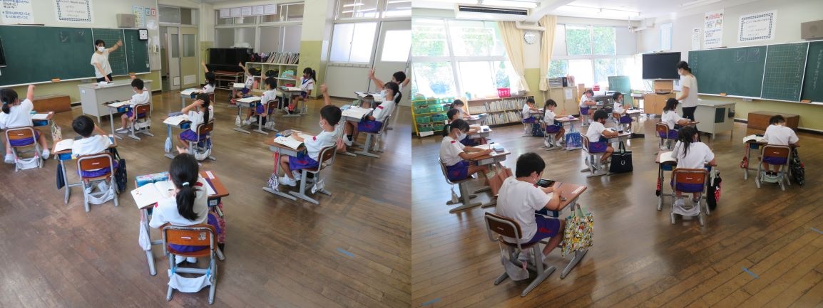 「かたかなを みつけよう」 教科書の「唱え歌」を音読して、見つけたカタカナをノートに書いています。 コップ、サラダ、パン、ジャム、スープ、ゼリー |