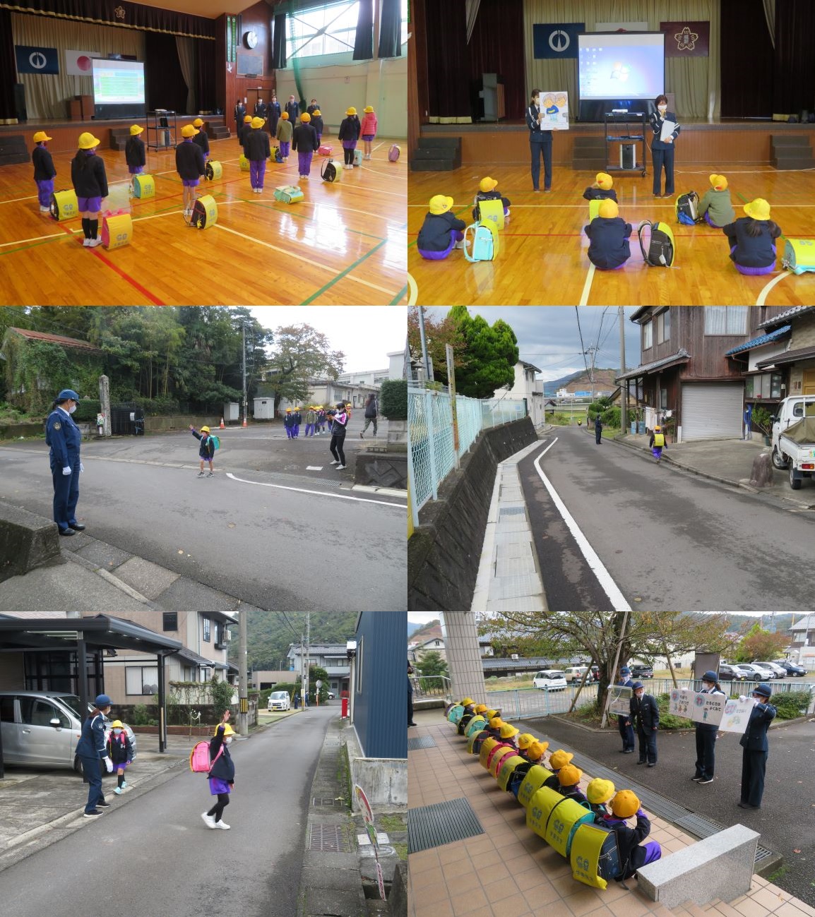今日は、敦賀市生活安全課と敦賀警察署交通課の方々にお越しいただき、1年生に、交通安全教室を行っていただきました。 まず初めに、交通安全のDVDを見せていただき、「道路は危険がいっぱいあり、交通ルールを守って、自分の身を守る行動をしないといけないこと」を、クイズを交えながら教えていただきました。 次に、実際に、学校周辺の道路に出て、安全に道路を歩く練習をしました。「止まる、見る、まつ」を守って歩行しましょう。 最後に、登下校のあいことば「なわとび」を教えていただきました。 【な】らぼう 1れつで 【わ】たるときは よくみて 【とび】ださない 今日、教えていただいたことを、みんなで守って、ぜったいに事故にあわないようにしていきましょうね。 |
