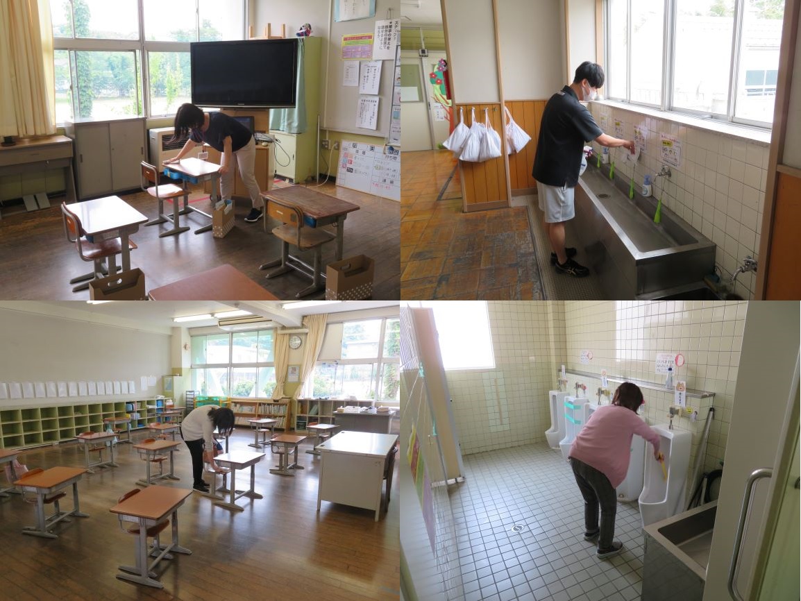 概要 児童の皆さんが下校した後は、先生方で、教室内や手洗い場、トイレなどのそうじをするとともに、児童の皆さんが、明日も安心して登校できるように消毒作業を行いました。