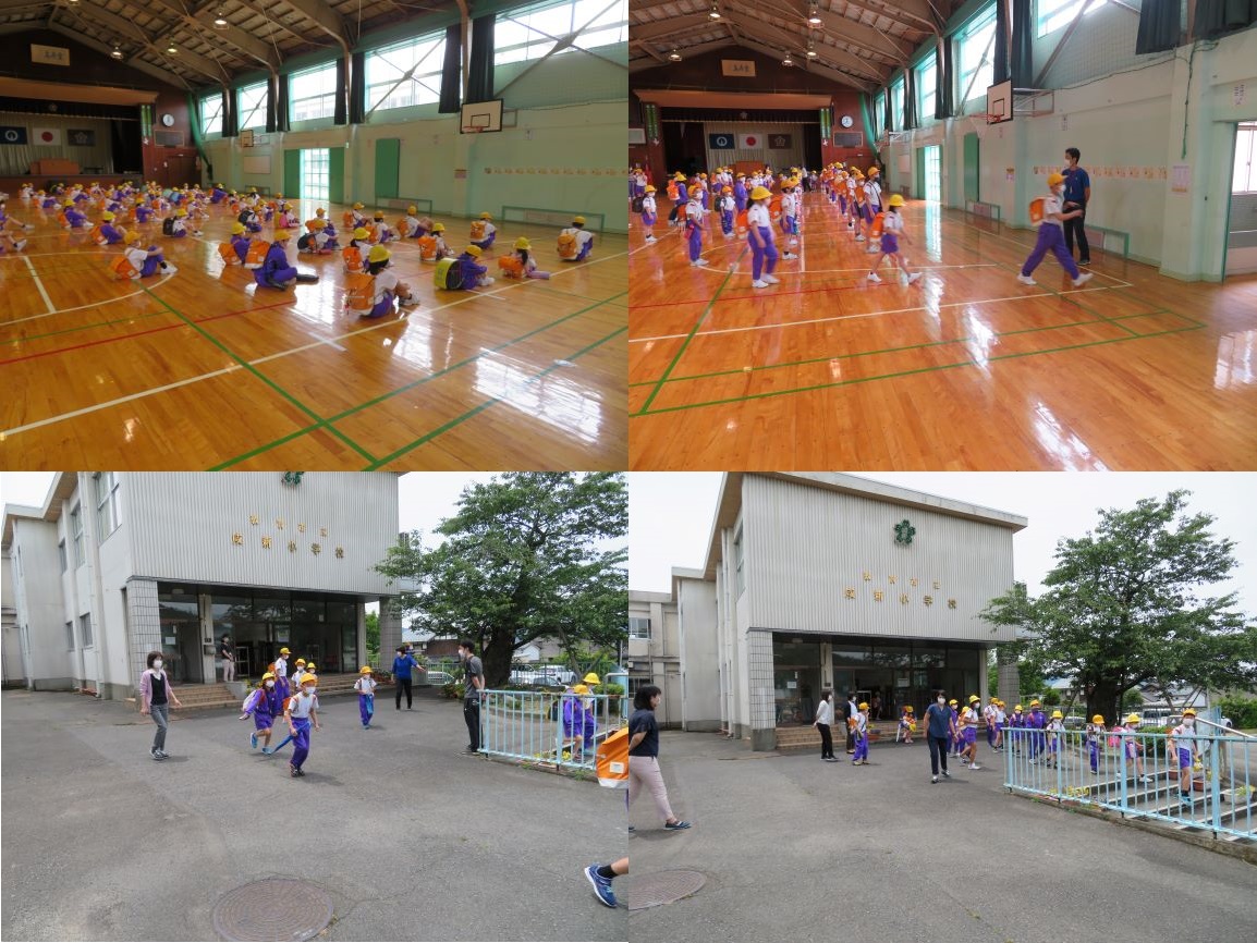 概要 児童玄関での密をさけるために、まずは体育館で間かくをあけて下校班ごとにならび、順に下校していきます。今日は、3時間の学習でしたが、みんな元気よく学習することができました。