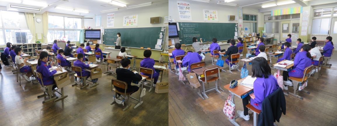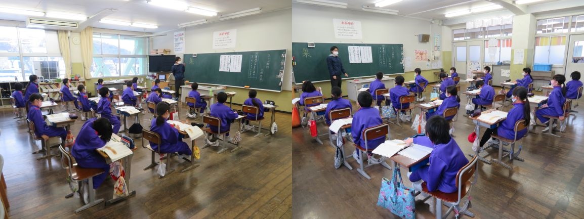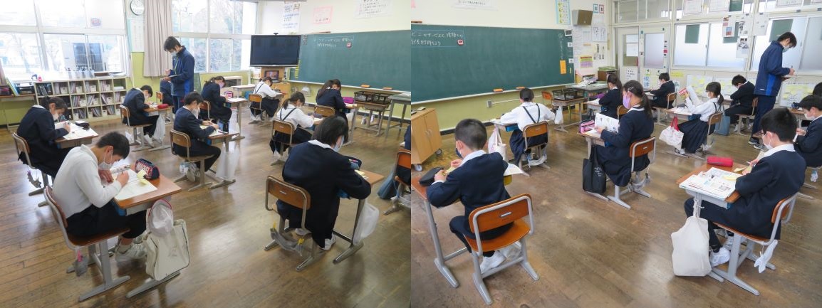 今日は、特設業間の時間に、4年生が発表をしました。演題は「雨ニモ負ケズ、風ニモ負ケズ」です。 まず初めに、いろいろな楽器を使って合奏している4年生の映像がスクリーンに映し出されました。曲は「茶色の小びん」です。 次に、「雨ニモ負ケズ~~~~~」の群読が始まりました。そして、群読のリズムで、群読に合わせて、学校生活の中での6年生の活躍ぶりが演じられました。 〇朝の登校時に、安全にみんなを連れてくる6年生。 〇休み時間に、ケンカや困りごとを解決してくれる6年生。 〇みんなをリードしてくれた、6年生の「ラジオ体操」の取り組み。 〇昼の放送で、みんなを楽しませるためにがんばってくれた6年生。 〇閉校に向けて、いろいろな企画(カウントダウンカレンダーや壁飾りなど)をしてくれた6年生。 そして最後に、4年生から、「6年生のみなさんは、どんなときも、学校の代表として、わたしたちを導いてくれました。そんな6年生に、わたしはなりたい。」という、力強いメッセージでしめくくられました。 |