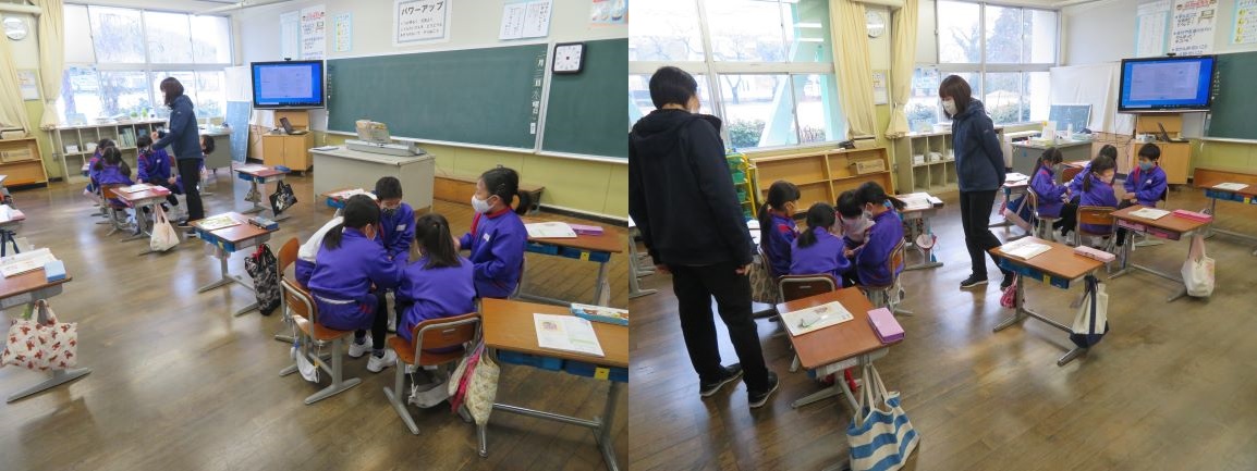 「ずうっと、ずっと、大すきだよ」 物語全体を読んだ感想を、みんなで伝え合っています。 |