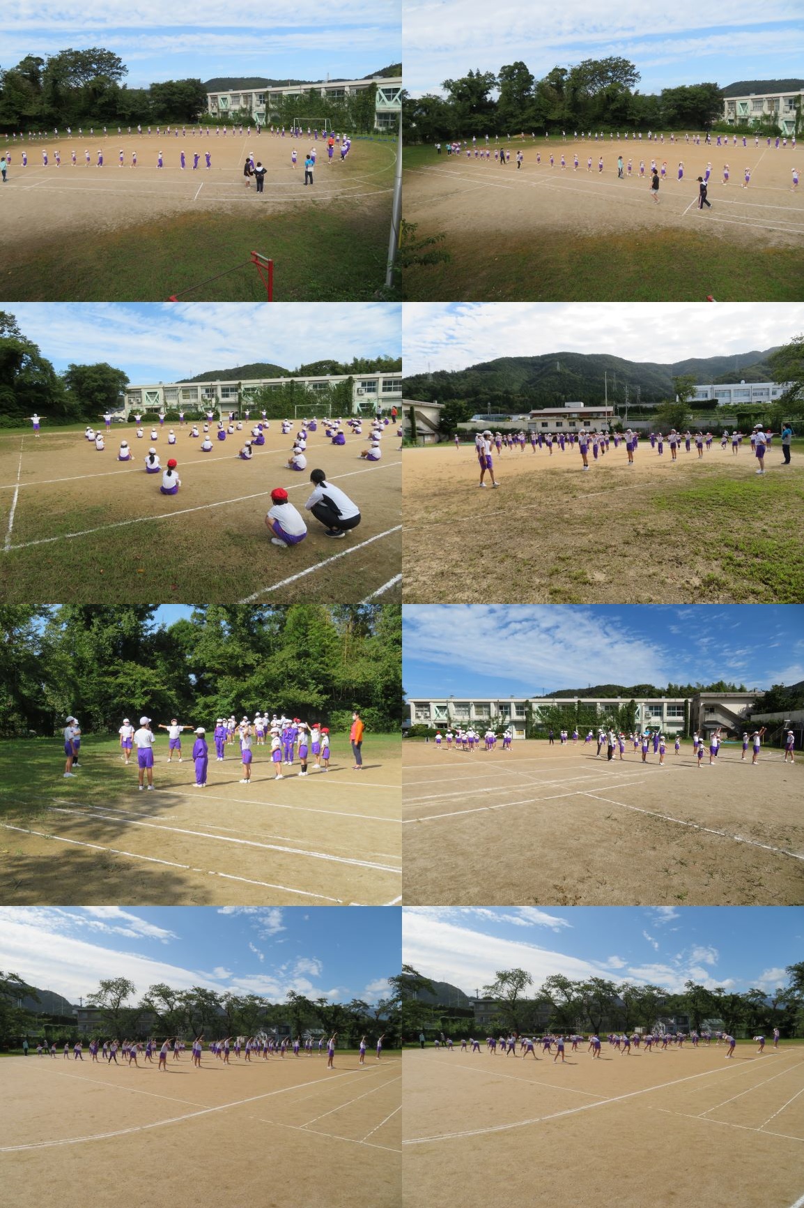 今日は、2限目と業間の時間を利用して、体育大会の全体練習を行いました。 まず初めに、応援の隊形になり、応援用ペットボトルの使い方について確認をしました。 次に、ラジオ体操の練習をしました。チーム練習の後、本番さながらのリハーサルを行いました。みんな、真剣な表情です。 最後に、「みんなで踊ろう」の体型になって、「敦賀とてもすきすき」を踊りました。もうすっかり、踊りを身につけています。 |