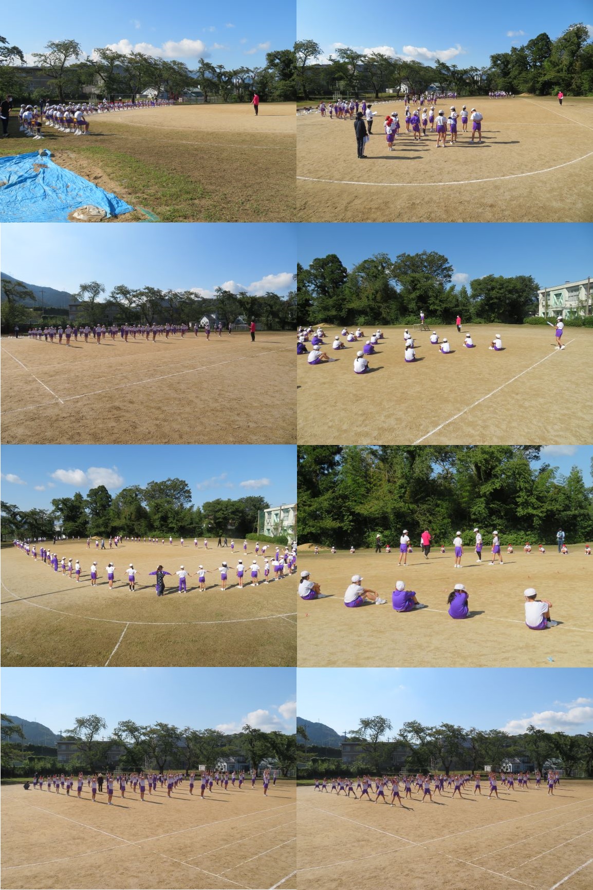 今日は、2限目に、全校児童で体育大会の全体練習を行いました。まずは、応援席の隊形づくりをし、会場全体と競技の動きなどの説明を聞きました。 次に、各チームに分かれて、「ラジオ体操⑦~⑫」の練習をしてから、全校児童で、2回目の通し練習をしました。前回よりも、また1段階レベルアップしています。あと1週間で、どこまで仕上がるか、とても楽しみです。 |