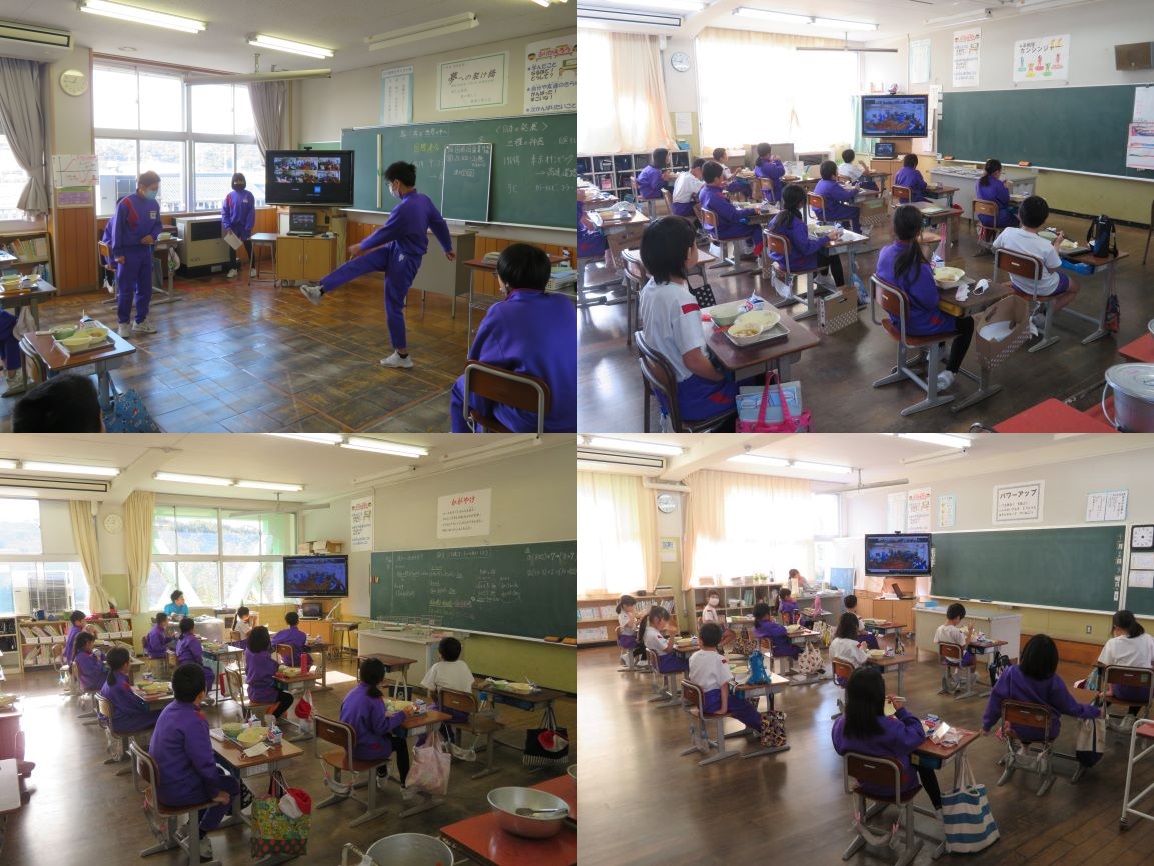 | 概要 | 今日の給食の時間に、6年生が企画をして、各教室をオンラインでつなげて、「ジェスチャークイズ」を行いました。みんなは、給食を食べながら、静かに楽しみました。 |